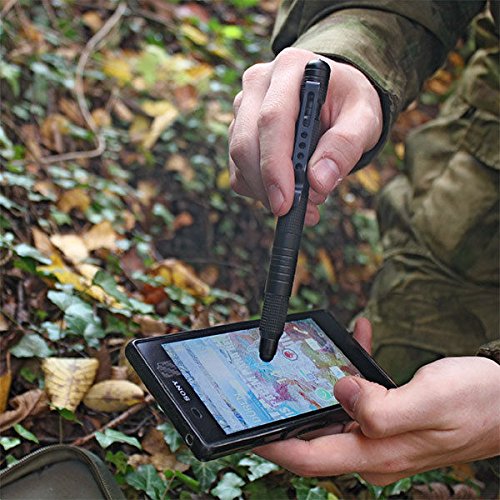 Stabiler Tactical Pen aus hochfestem Aluminium mit Gürtelclip, auch verwendbar als Touchpen für Smartphone und Tablets.